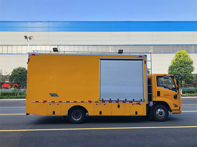 上裝配置:定制復合箱體,帶降噪功能,不銹鋼內(nèi)飾,75WK柴油發(fā)動機,雙風機組合,定制控制系統(tǒng),160米繞線機,紫外光大小燈鏈各一組,箱體帶冷暖空調(diào),氣動遮陽板,不銹鋼儲物柜,兩側帶工具箱,更多配置
